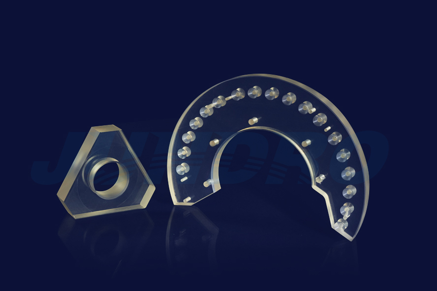 超低膨脹微晶玻璃結構件是極端環(huán)境下精密設備的核心組件,其熱膨脹系數(shù)可低至±1×10??/℃以下,在-200℃至800℃溫差中幾乎無尺寸變化,遠超普通金屬與陶瓷的穩(wěn)定性。 這類結構件采用鋰鋁硅系微晶玻璃經(jīng)精準晶化制成,內(nèi)部析出均勻的β-石英固溶體微晶,通過晶體與玻璃相的熱膨脹抵消實現(xiàn)超低膨脹。經(jīng)CNC精密加工,其平面度可達0.1μm/m,表面粗糙度Ra≤0.01μm,適配光學儀器、航天導航等對尺寸穩(wěn)定性要求嚴苛的場景。 同時,它兼具高強度(抗彎強度>150MPa)與抗熱沖擊性,能耐受劇烈溫度波動而不碎裂,為射電望遠鏡支架、芯片光刻平臺等關鍵設備提供了不可替代的結構支撐。